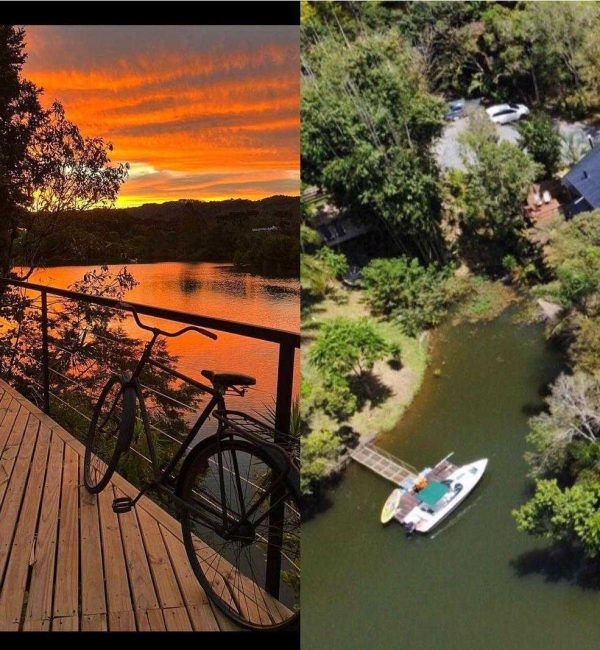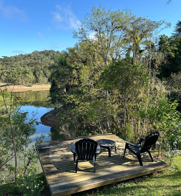 de frente para a represa é um convite ao descanso ,