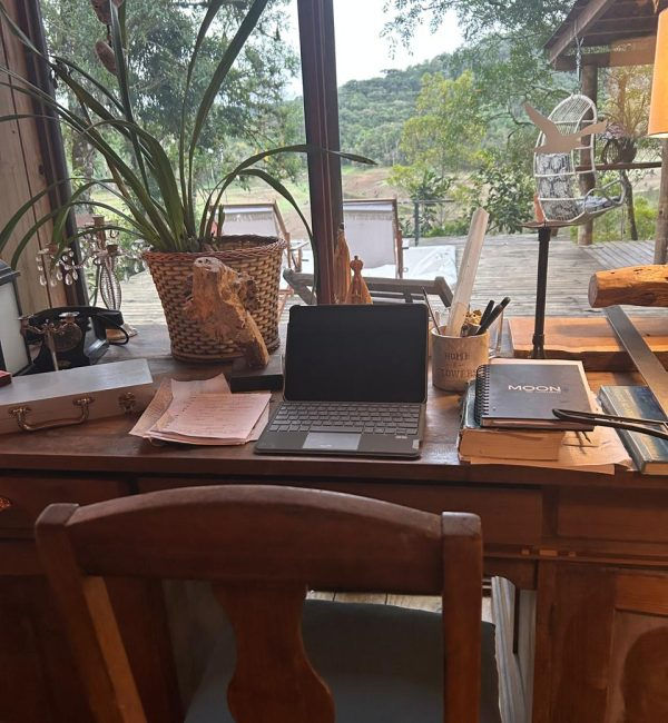 pássaros e sente a brisa de ar puro no rosto. O deck